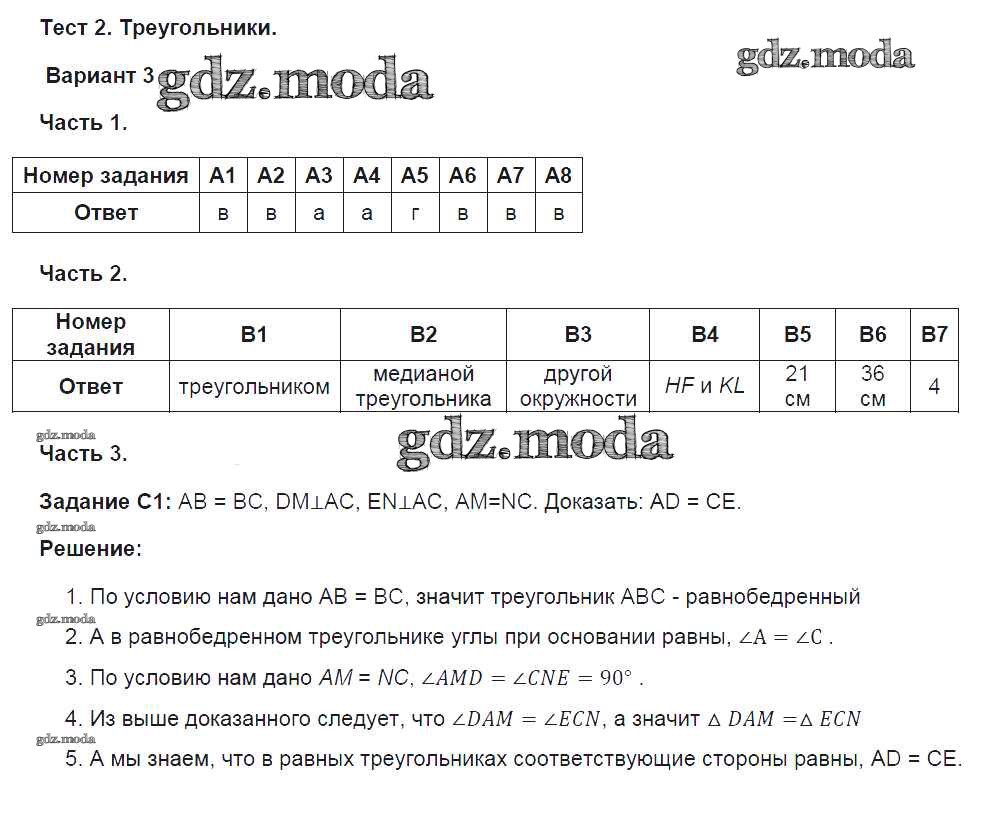 ГДЗ решение к заданию № 3 Геометрия 7 класс Тесты Фарков А.В. (к новому уч. Атанасяна Л.С.) Экзамен 2015 ФГОС бесплатно на гдз.мода!