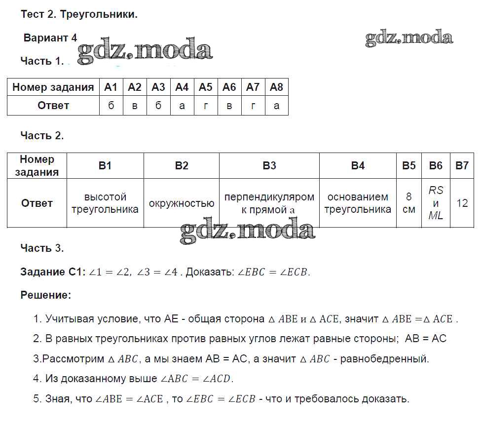 ГДЗ решение к заданию № 4 Геометрия 7 класс Тесты Фарков А.В. (к новому уч. Атанасяна Л.С.) Экзамен 2015 ФГОС бесплатно на гдз.мода!