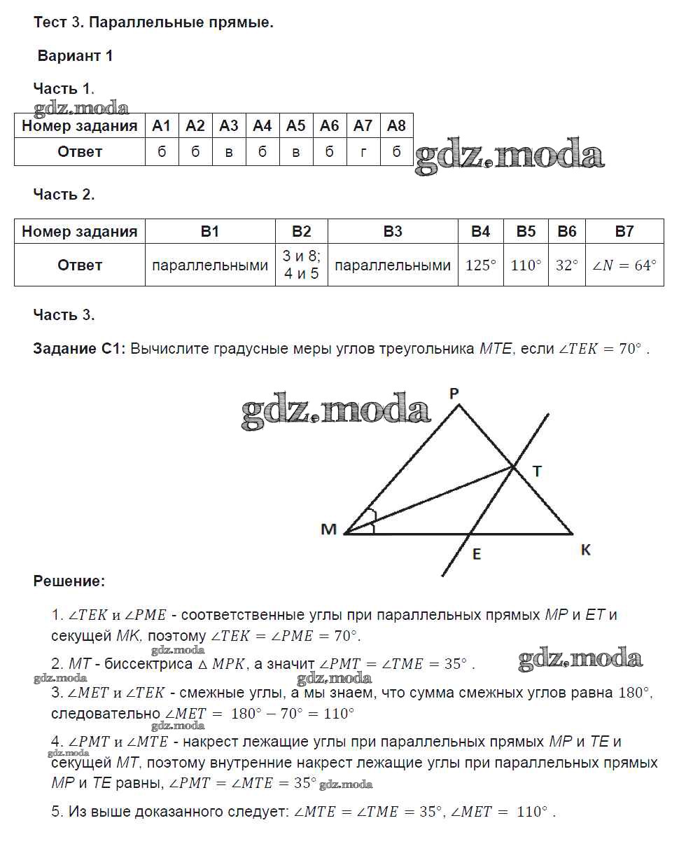 ОТВЕТ на задание № 1 Тесты по Геометрии 7 класс Фарков УМК