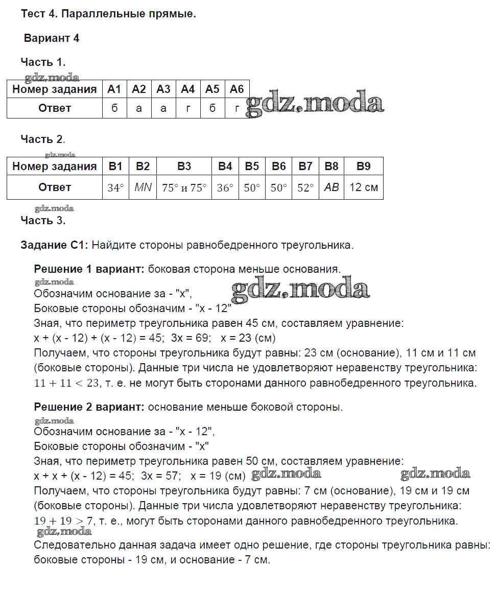ОТВЕТ на задание № 4 Тесты по Геометрии 7 класс Фарков УМК