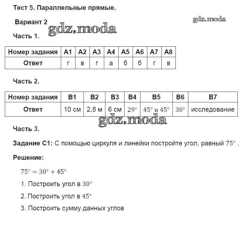 ОТВЕТ на задание № 2 Тесты по Геометрии 7 класс Фарков УМК