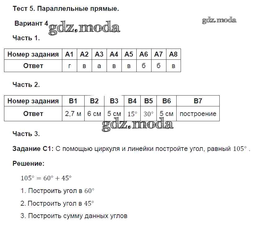 ГДЗ решение к заданию № 4 Геометрия 7 класс Тесты Фарков А.В. (к новому уч. Атанасяна Л.С.) Экзамен 2015 ФГОС бесплатно на гдз.мода!