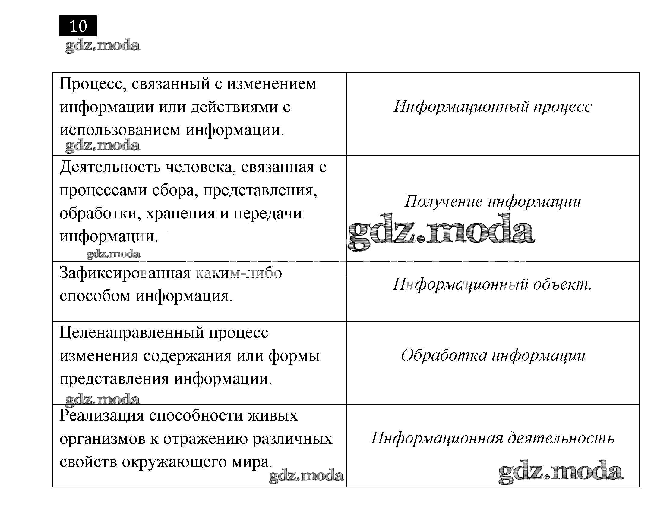 ГДЗ решение к заданию № 10 Информатика 7 класс рабочая тетрадь Босова Л.Л. Бином 2018 ФГОС бесплатно на гдз.мода!