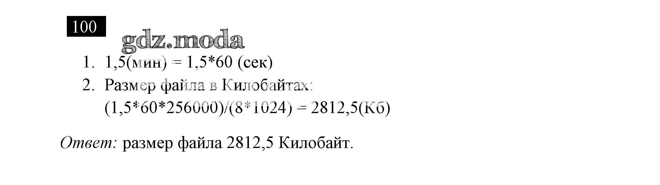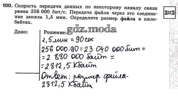 ГДЗ решение к заданию № 100 Информатика 7 класс рабочая тетрадь Босова Л.Л. Бином 2018 ФГОС бесплатно на гдз.мода!