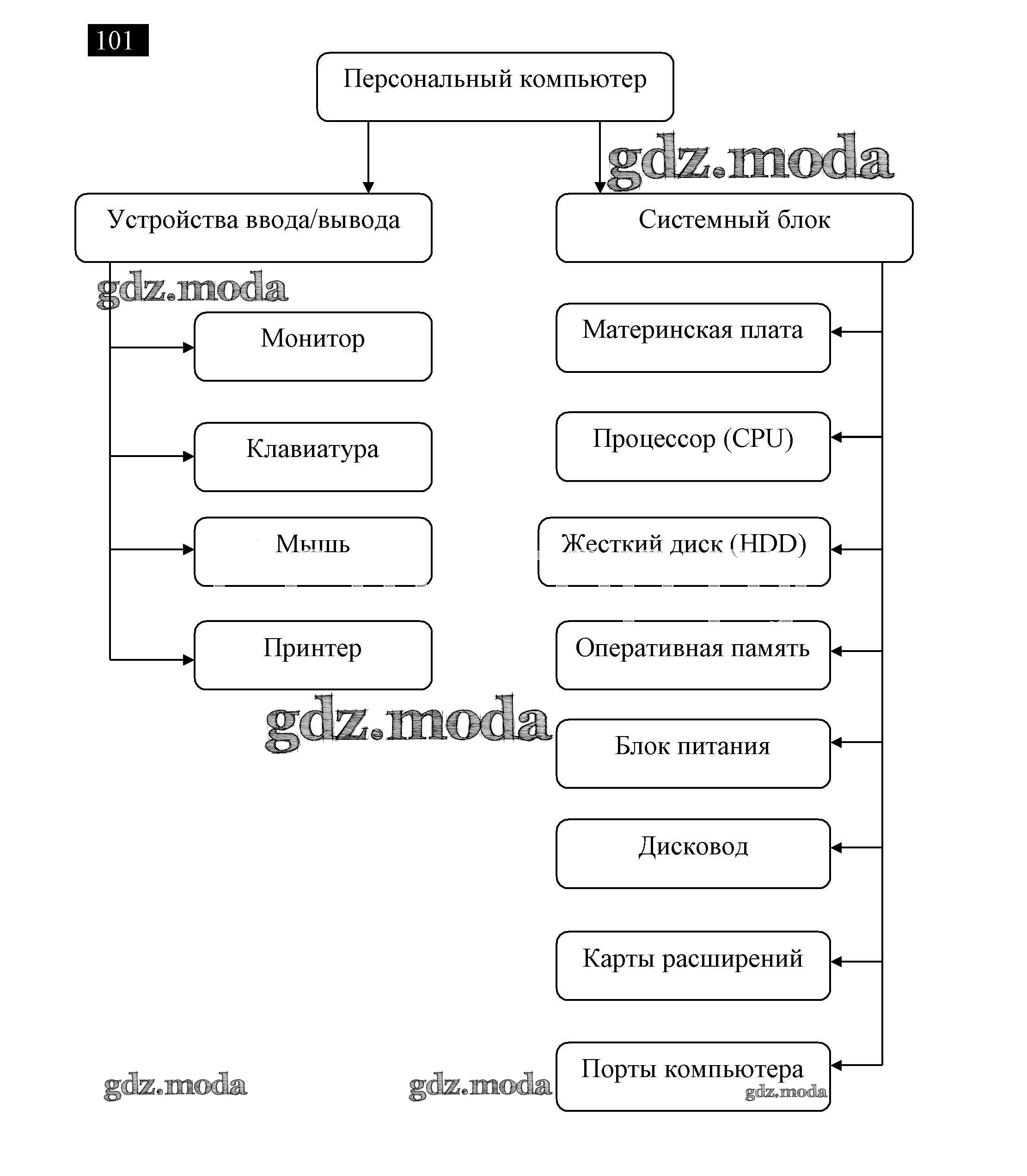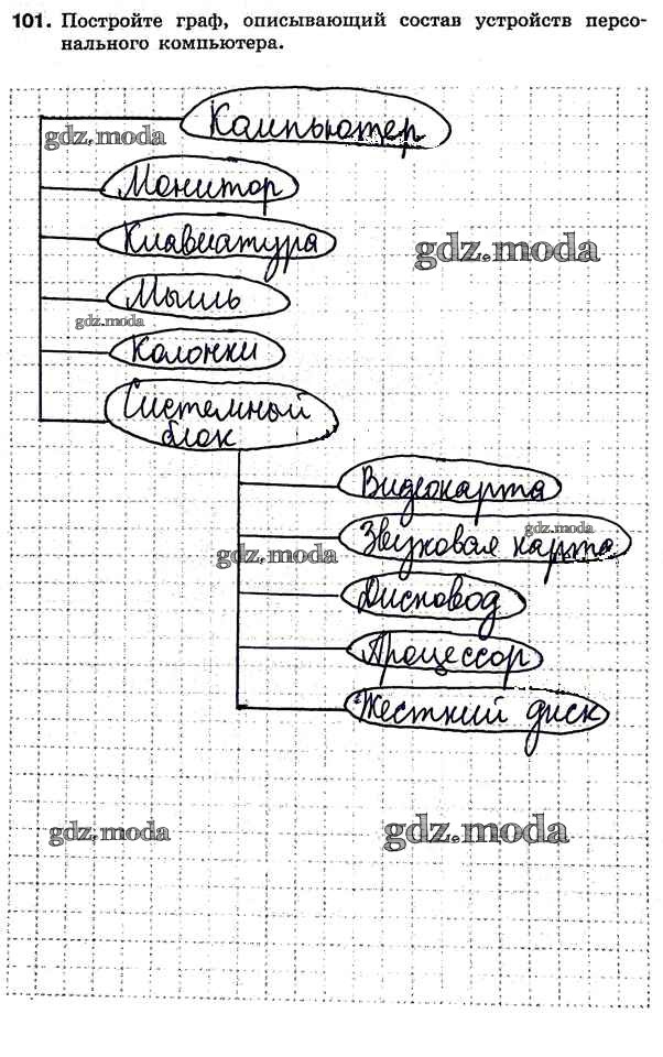 ГДЗ решение к заданию № 101 Информатика 7 класс рабочая тетрадь Босова Л.Л. Бином 2018 ФГОС бесплатно на гдз.мода!
