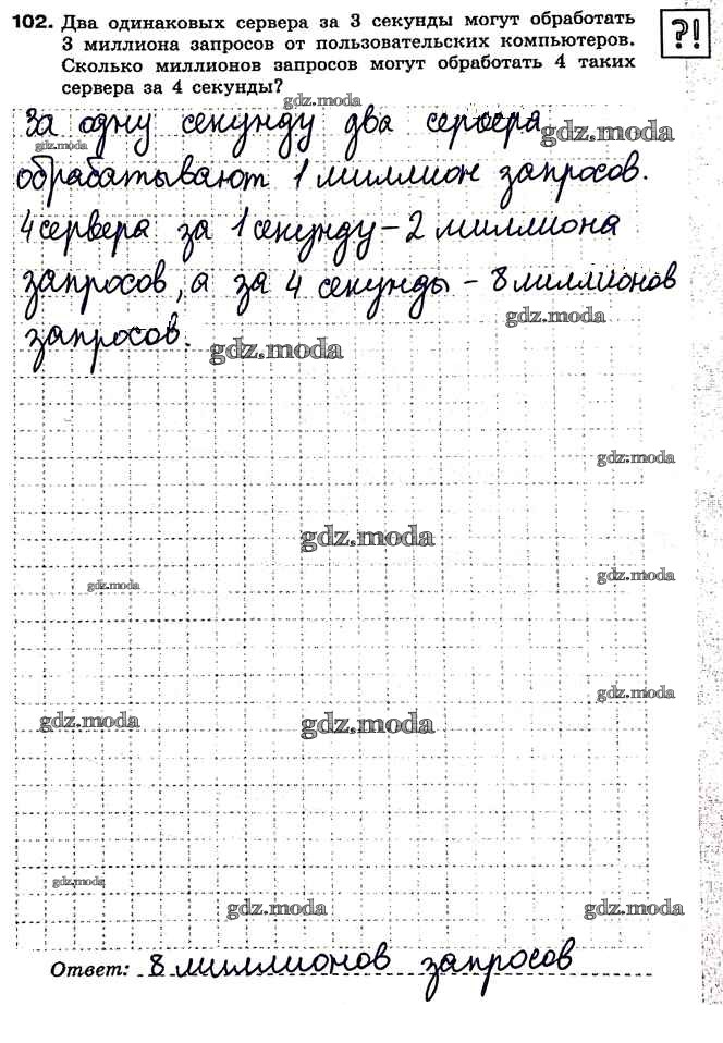 ГДЗ решение к заданию № 102 Информатика 7 класс рабочая тетрадь Босова Л.Л. Бином 2018 ФГОС бесплатно на гдз.мода!