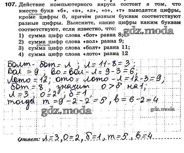 ГДЗ решение к заданию № 107 Информатика 7 класс рабочая тетрадь Босова Л.Л. Бином 2018 ФГОС бесплатно на гдз.мода!