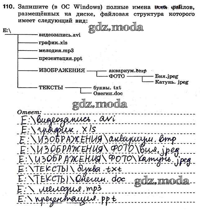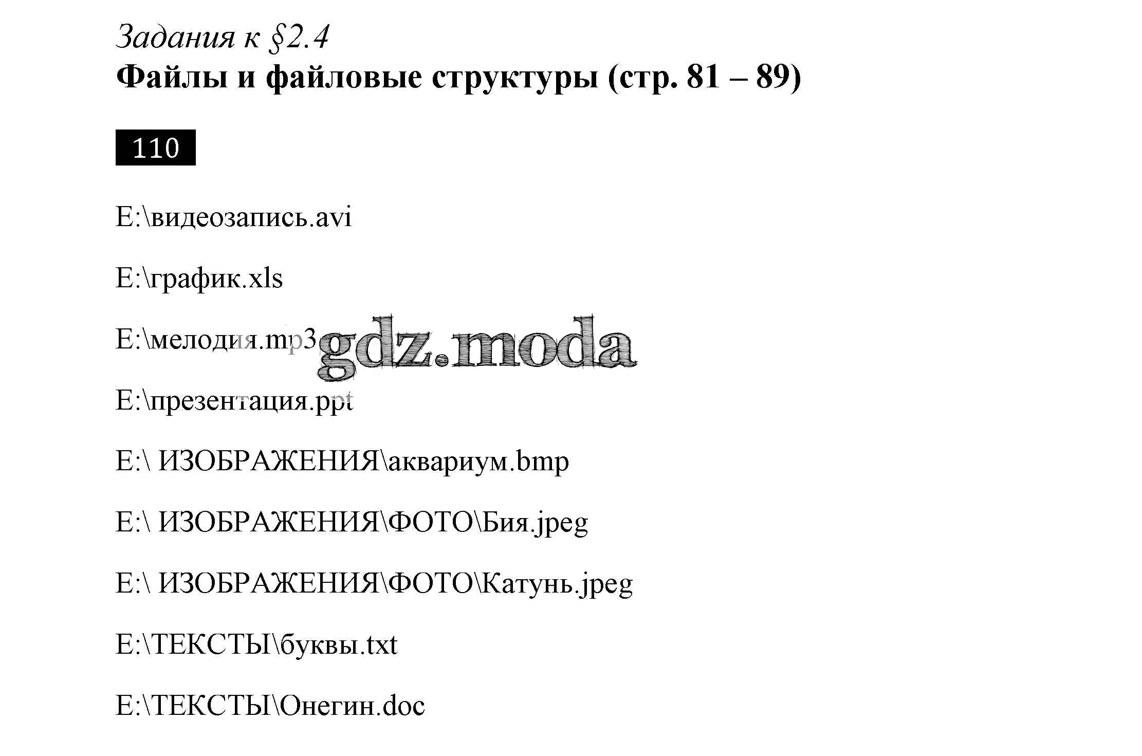 ГДЗ решение к заданию № 110 Информатика 7 класс рабочая тетрадь Босова Л.Л. Бином 2018 ФГОС бесплатно на гдз.мода!
