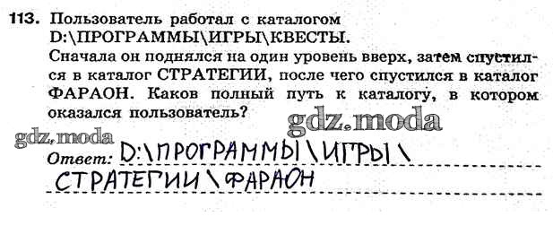 ГДЗ решение к заданию № 113 Информатика 7 класс рабочая тетрадь Босова Л.Л. Бином 2018 ФГОС бесплатно на гдз.мода!