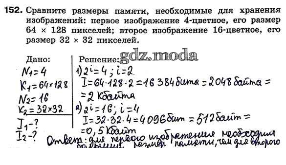 ГДЗ решение к заданию № 152 Информатика 7 класс рабочая тетрадь Босова Л.Л. Бином 2018 ФГОС бесплатно на гдз.мода!