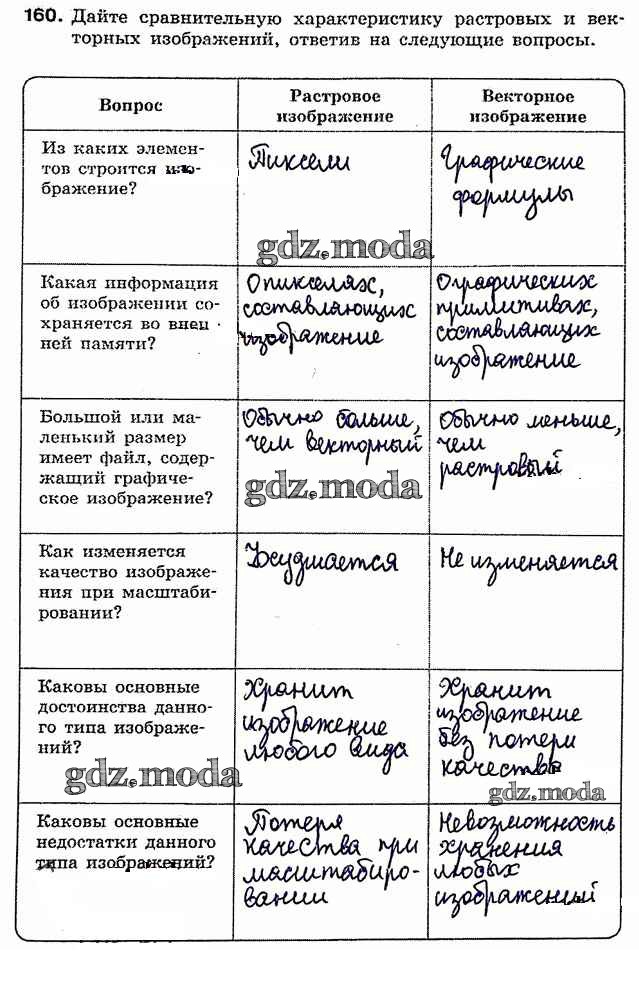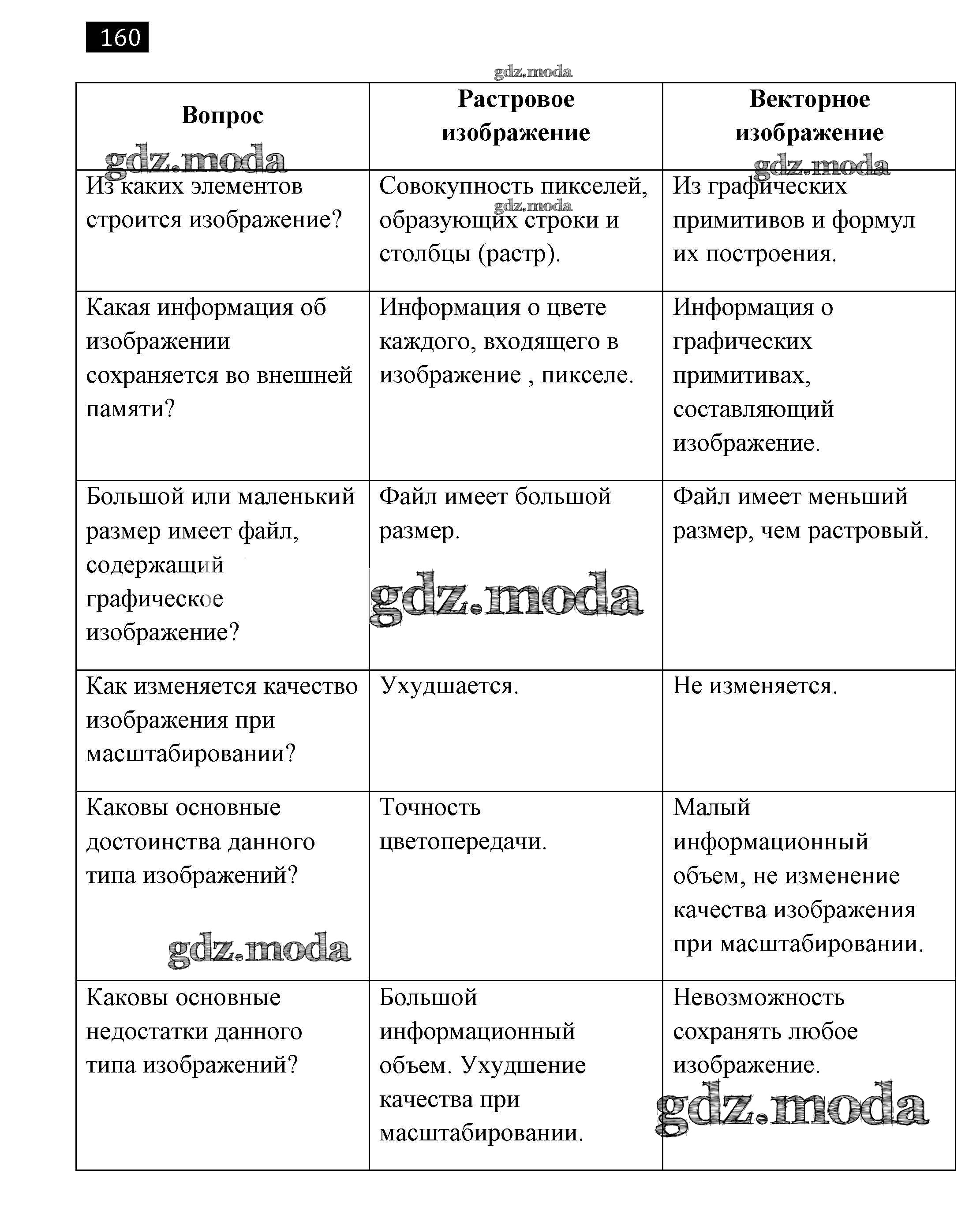 ГДЗ решение к заданию № 160 Информатика 7 класс рабочая тетрадь Босова Л.Л. Бином 2018 ФГОС бесплатно на гдз.мода!
