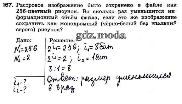 ГДЗ решение к заданию № 167 Информатика 7 класс рабочая тетрадь Босова Л.Л. Бином 2018 ФГОС бесплатно на гдз.мода!