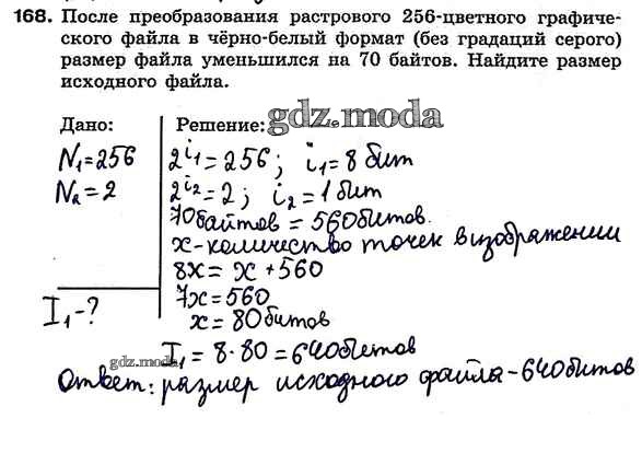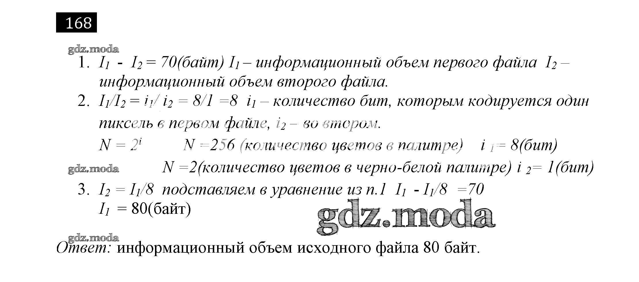 ГДЗ решение к заданию № 168 Информатика 7 класс рабочая тетрадь Босова Л.Л. Бином 2018 ФГОС бесплатно на гдз.мода!