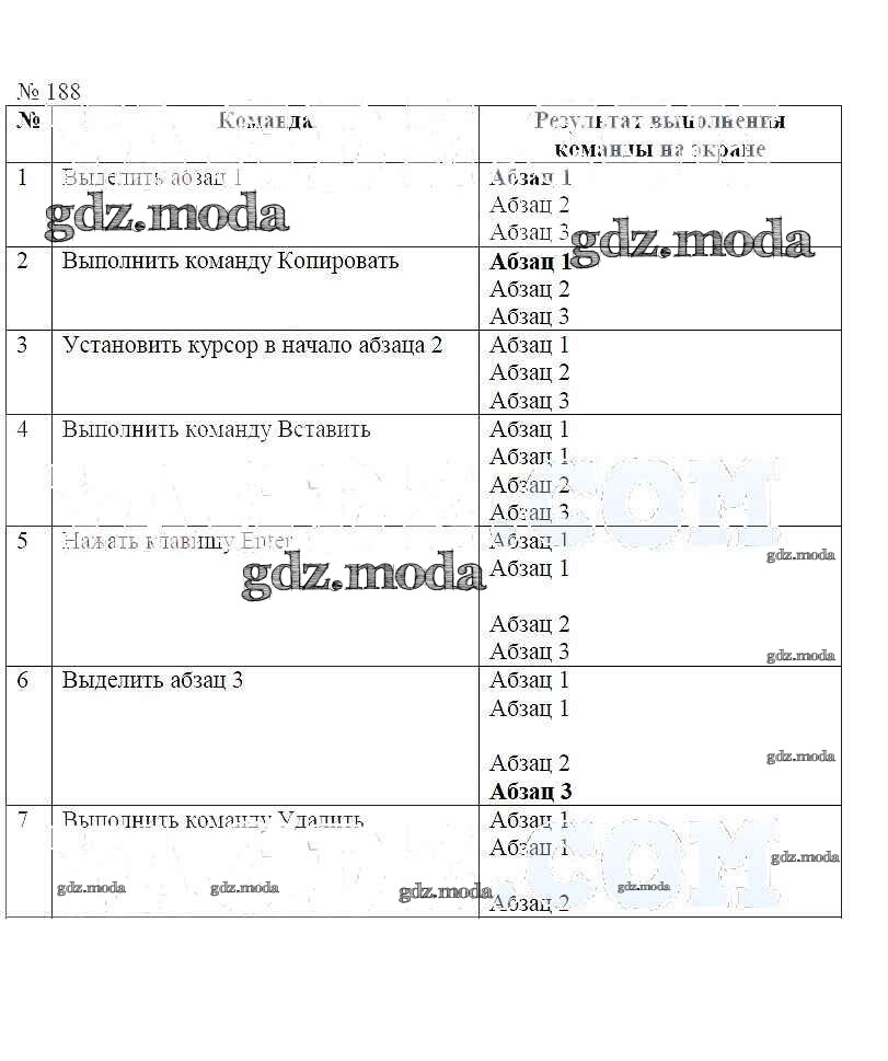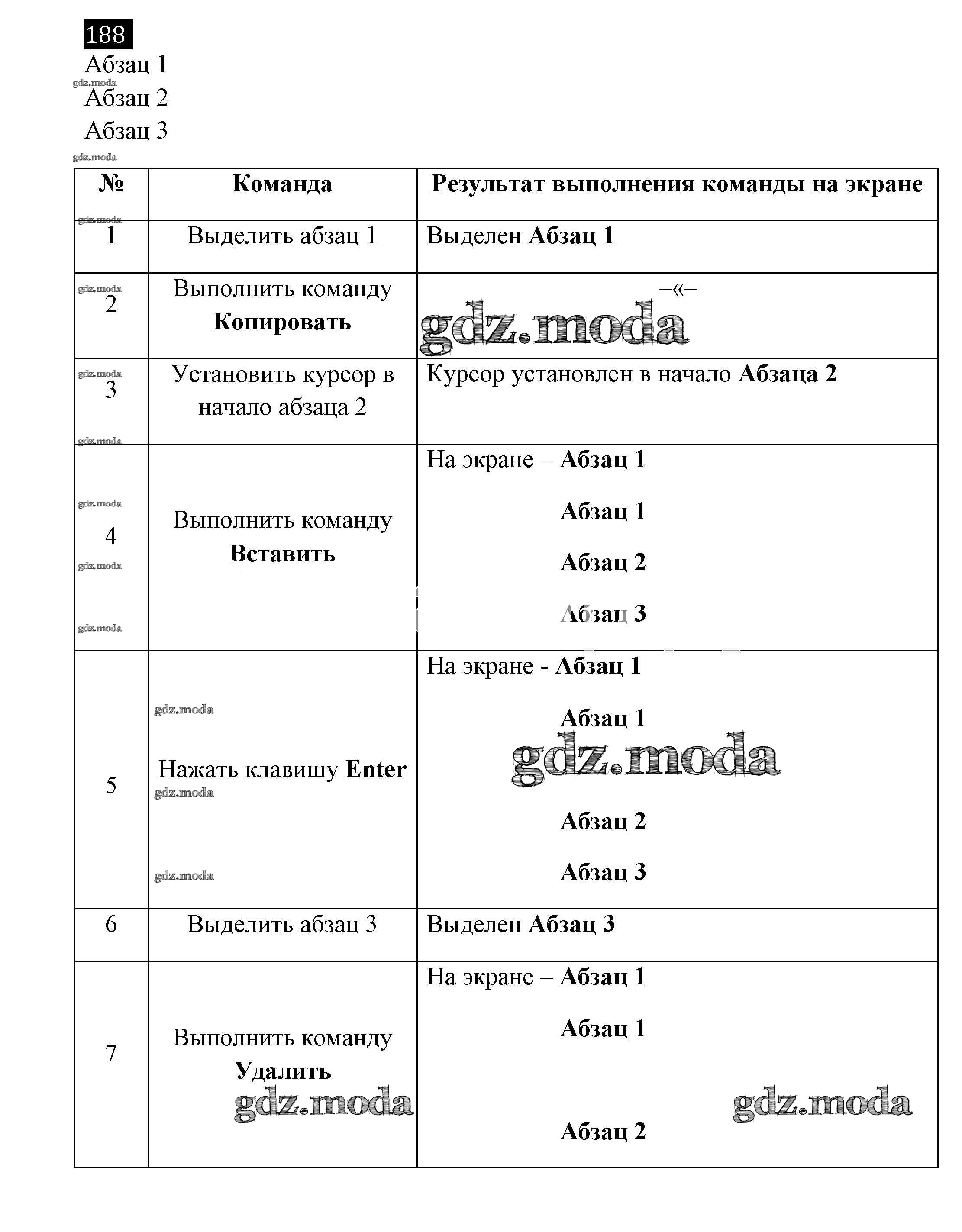 ГДЗ решение к заданию № 188 Информатика 7 класс рабочая тетрадь Босова Л.Л. Бином 2018 ФГОС бесплатно на гдз.мода!