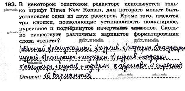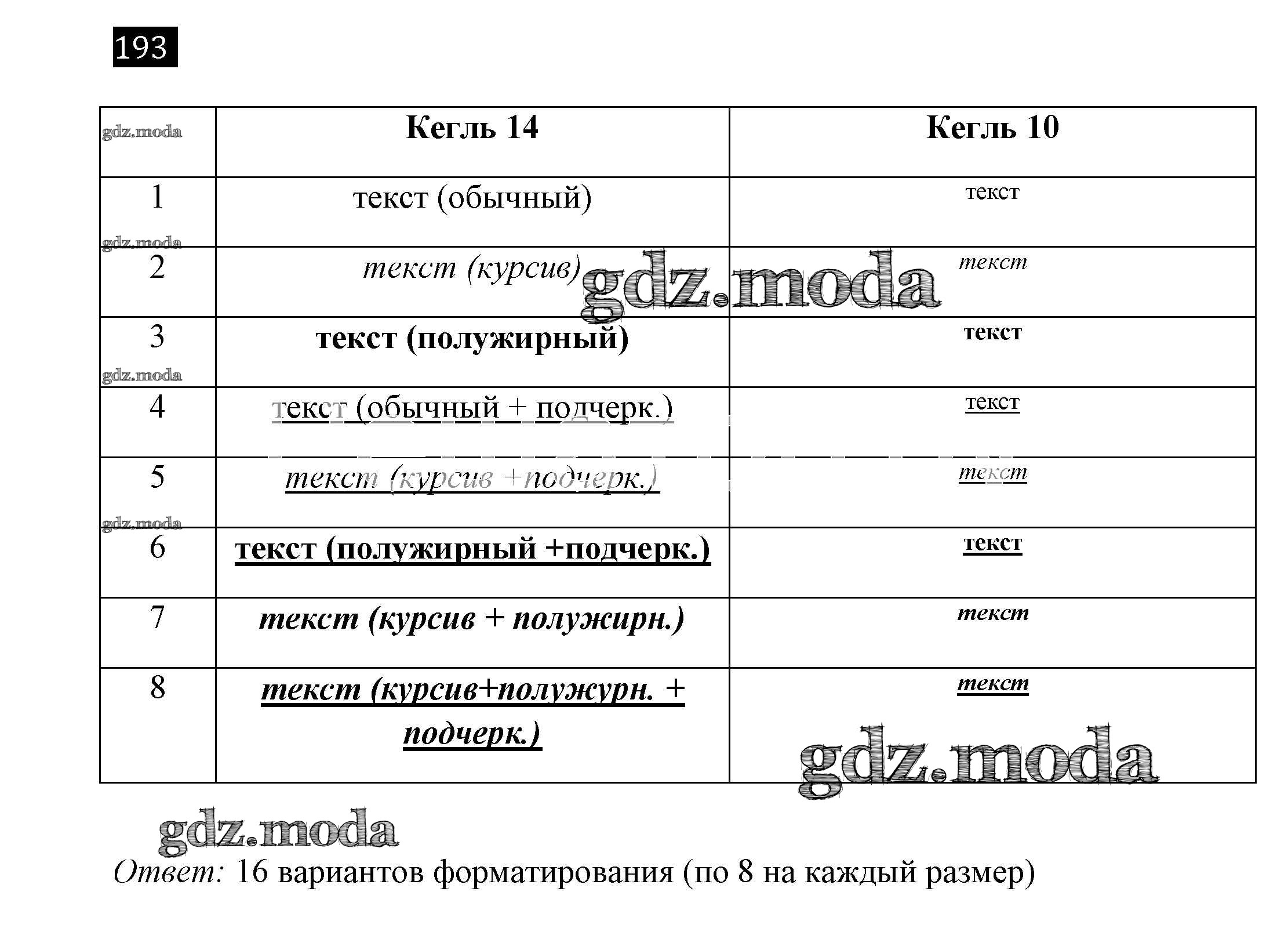 ГДЗ решение к заданию № 193 Информатика 7 класс рабочая тетрадь Босова Л.Л. Бином 2018 ФГОС бесплатно на гдз.мода!