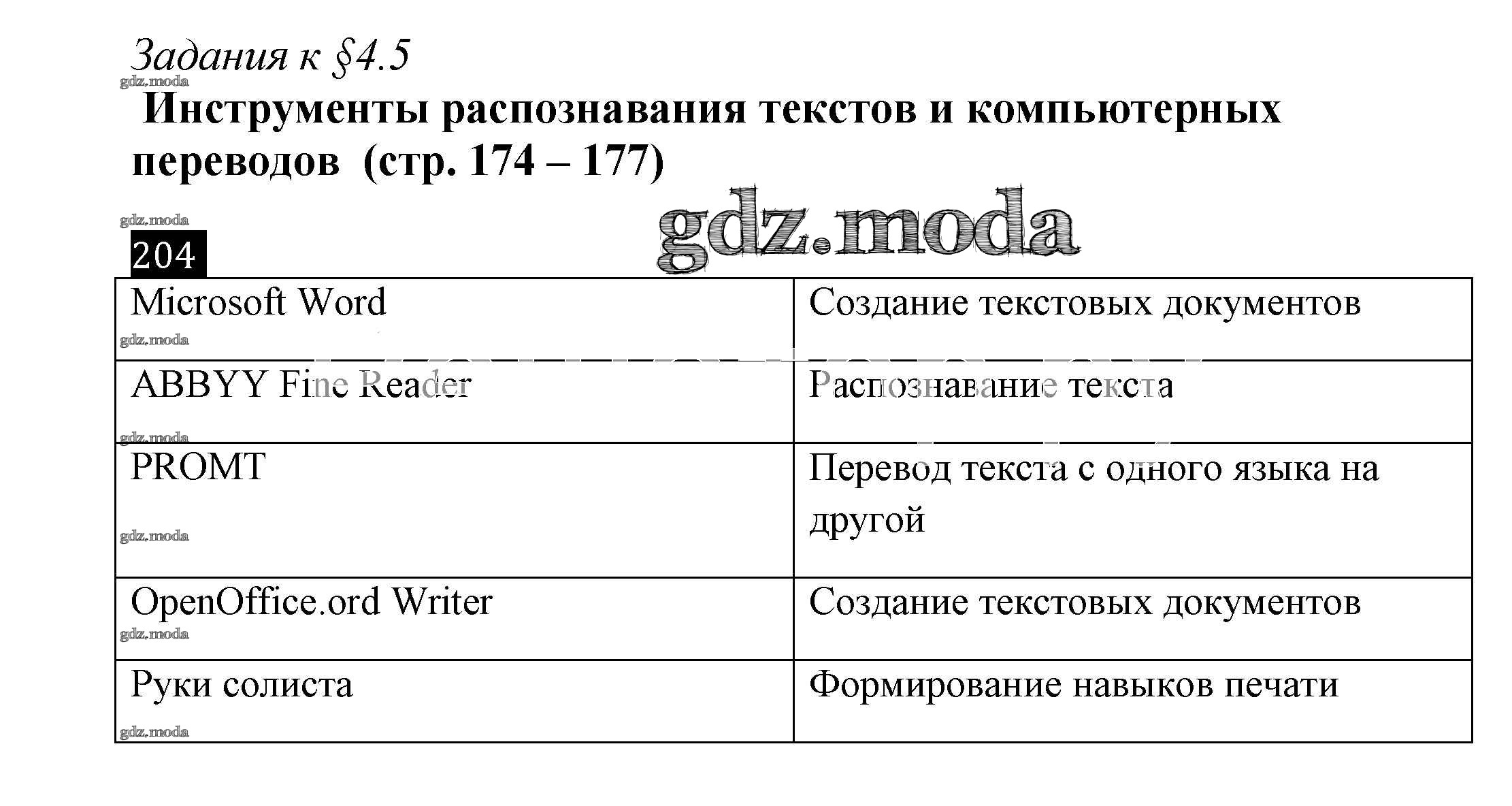 ГДЗ решение к заданию № 204 Информатика 7 класс рабочая тетрадь Босова Л.Л. Бином 2018 ФГОС бесплатно на гдз.мода!