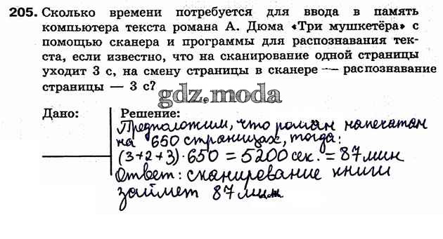 ГДЗ решение к заданию № 205 Информатика 7 класс рабочая тетрадь Босова Л.Л. Бином 2018 ФГОС бесплатно на гдз.мода!