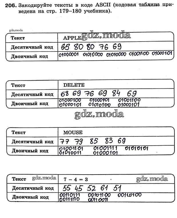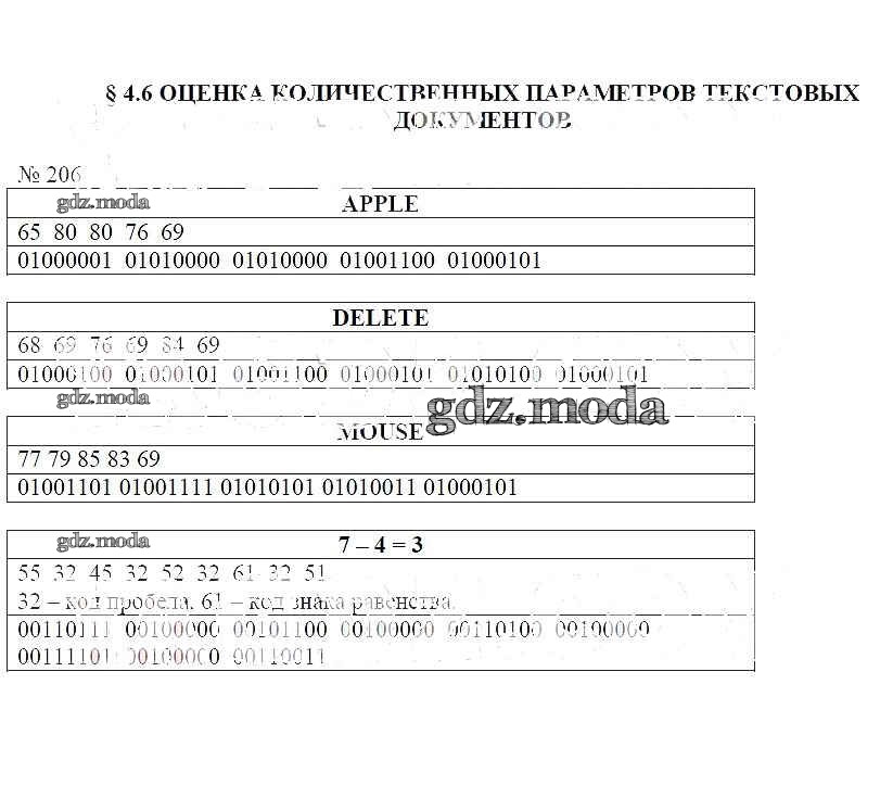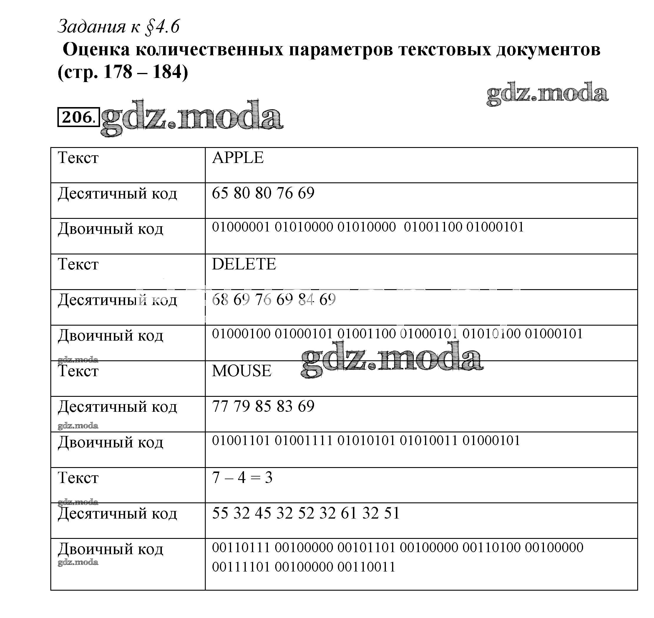ГДЗ решение к заданию № 206 Информатика 7 класс рабочая тетрадь Босова Л.Л. Бином 2018 ФГОС бесплатно на гдз.мода!