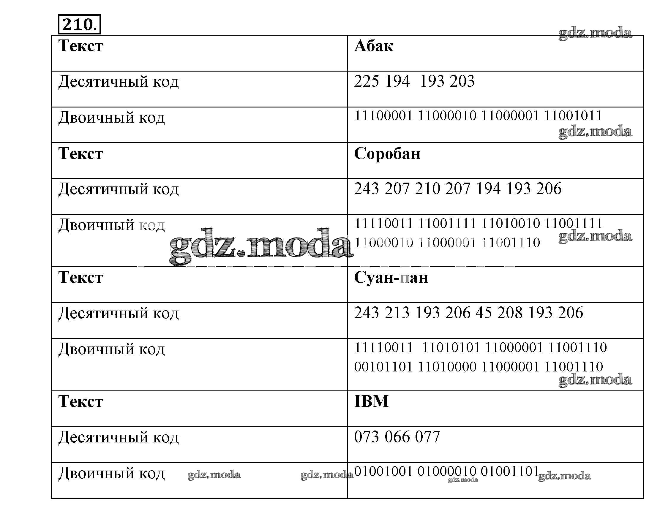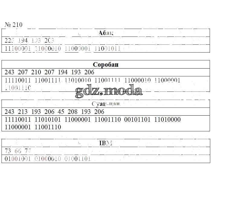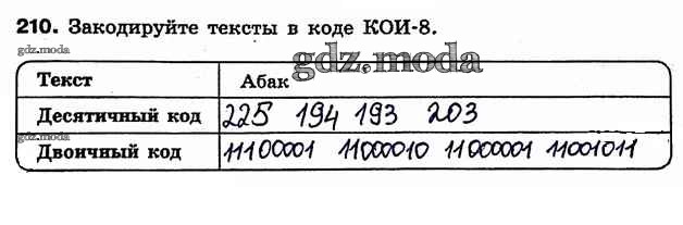 ГДЗ решение к заданию № 210 Информатика 7 класс рабочая тетрадь Босова Л.Л. Бином 2018 ФГОС бесплатно на гдз.мода!