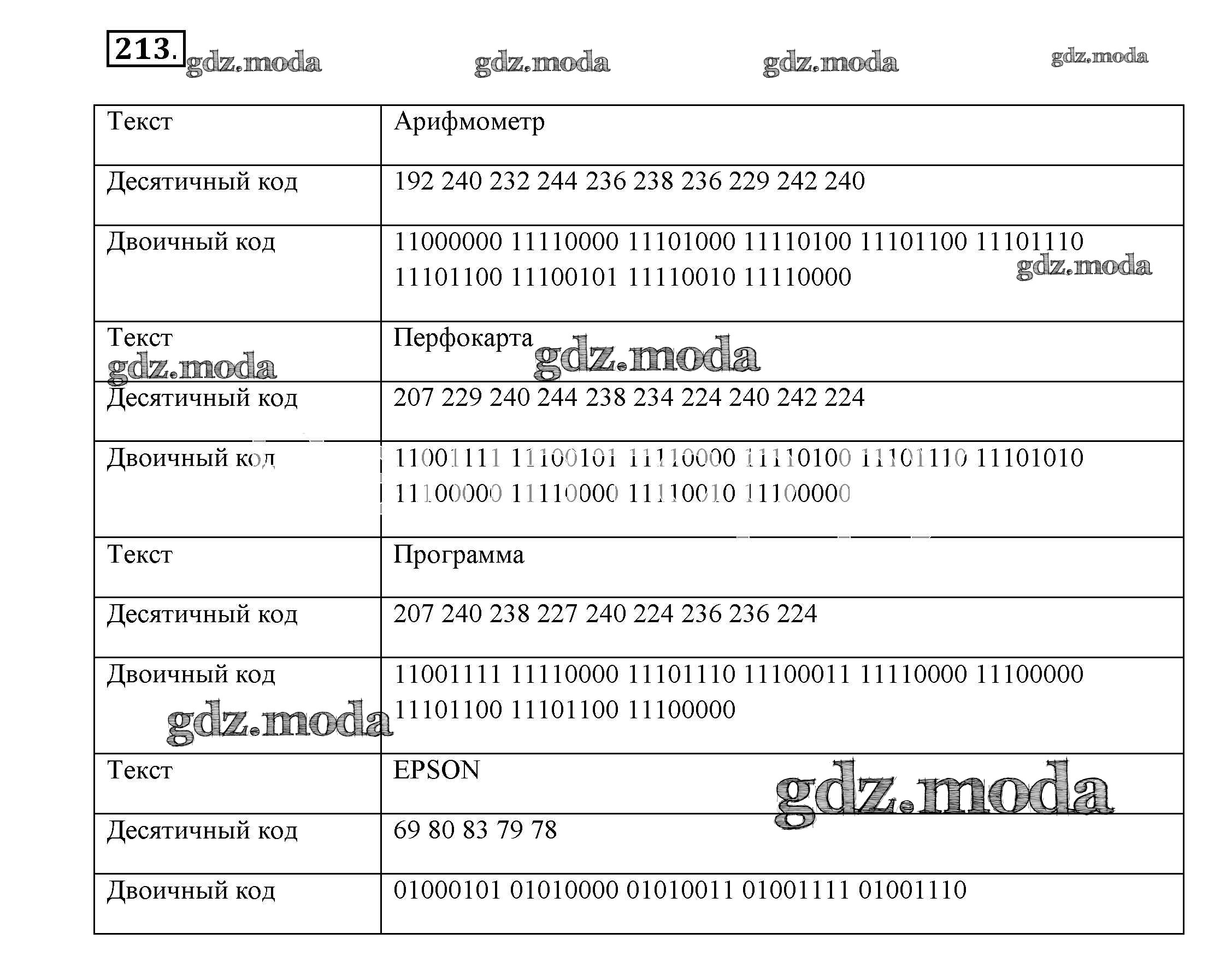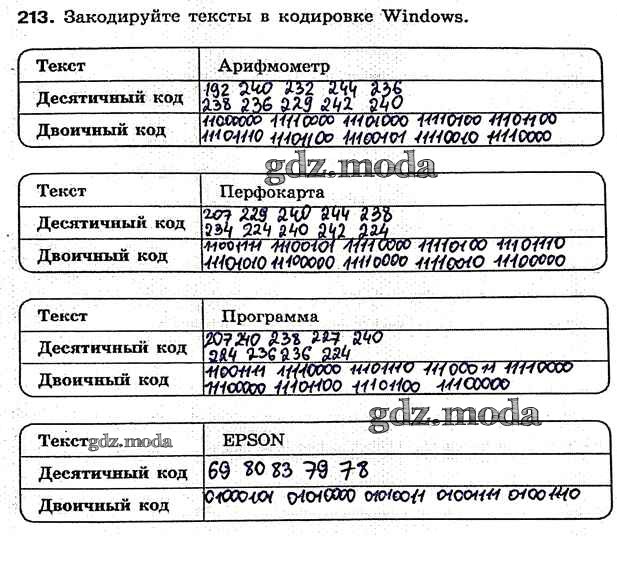 ГДЗ решение к заданию № 213 Информатика 7 класс рабочая тетрадь Босова Л.Л. Бином 2018 ФГОС бесплатно на гдз.мода!