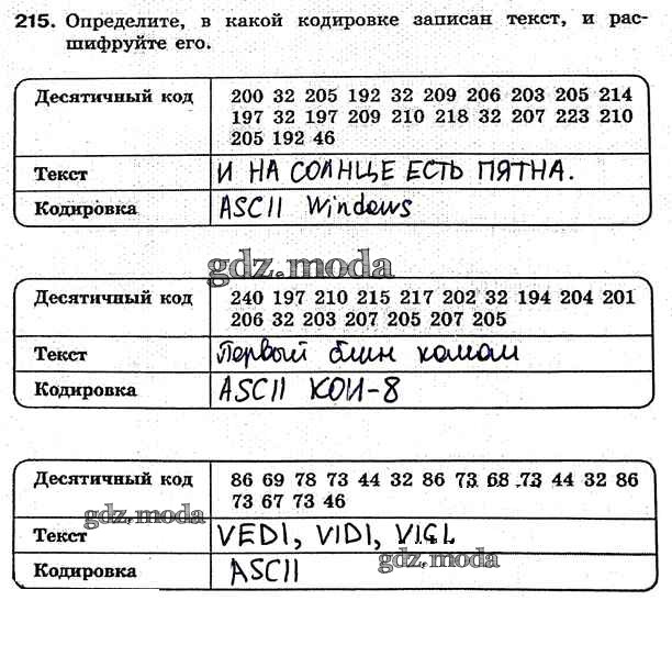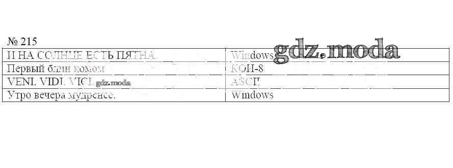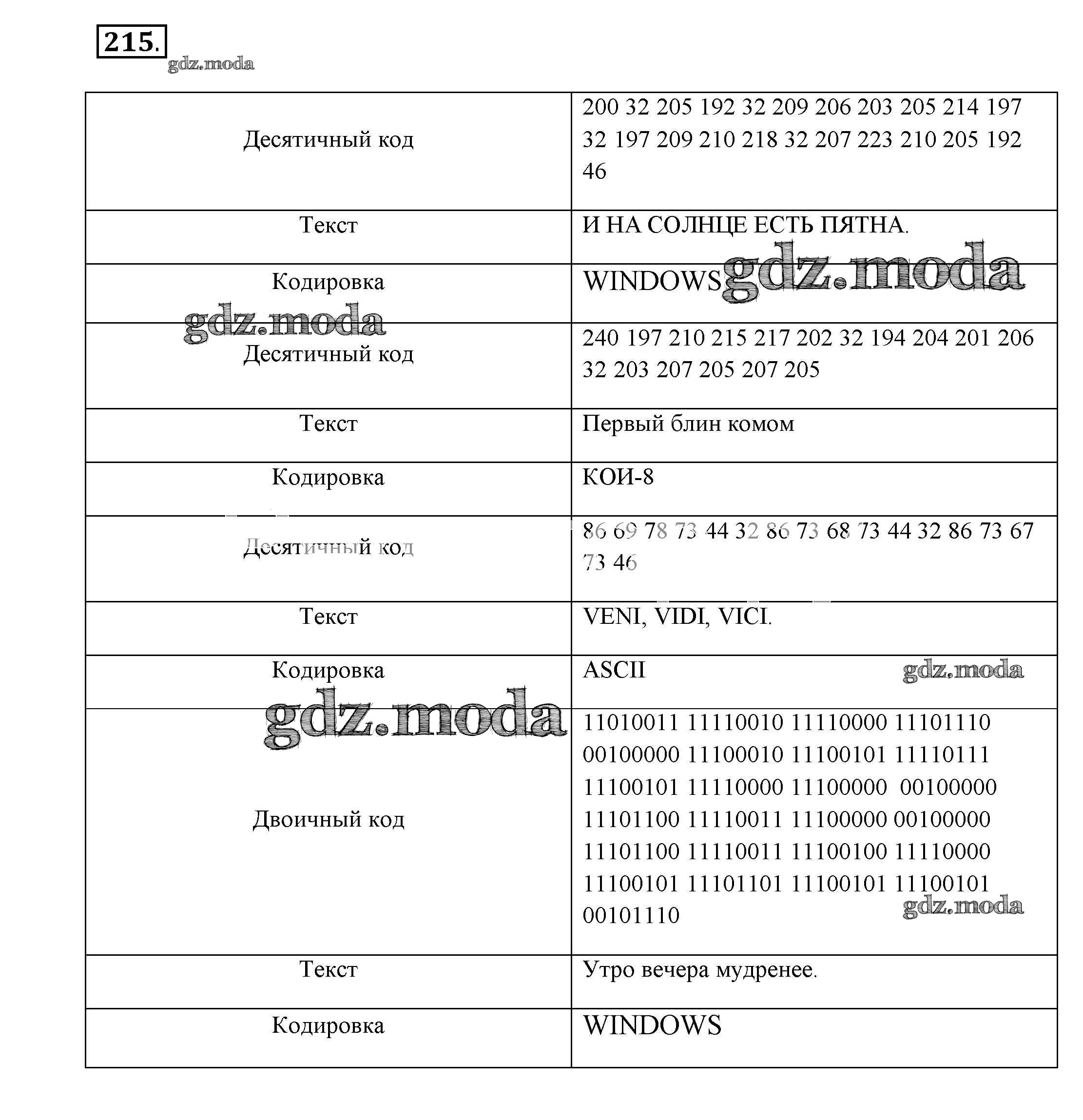 ГДЗ решение к заданию № 215 Информатика 7 класс рабочая тетрадь Босова Л.Л. Бином 2018 ФГОС бесплатно на гдз.мода!