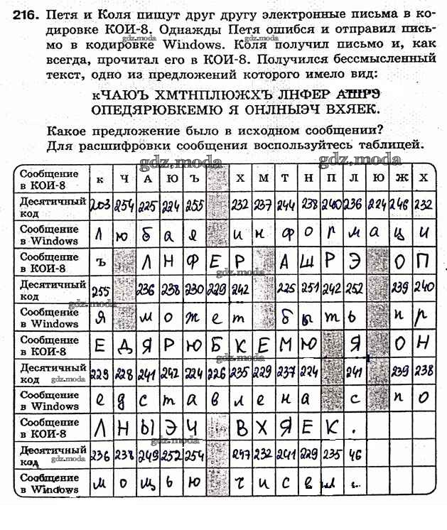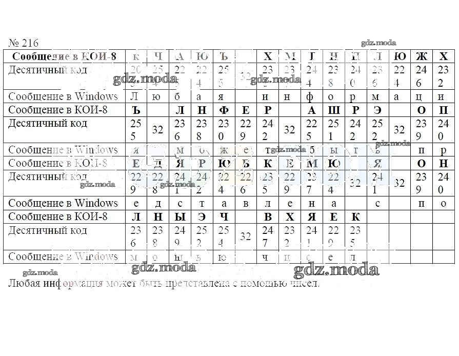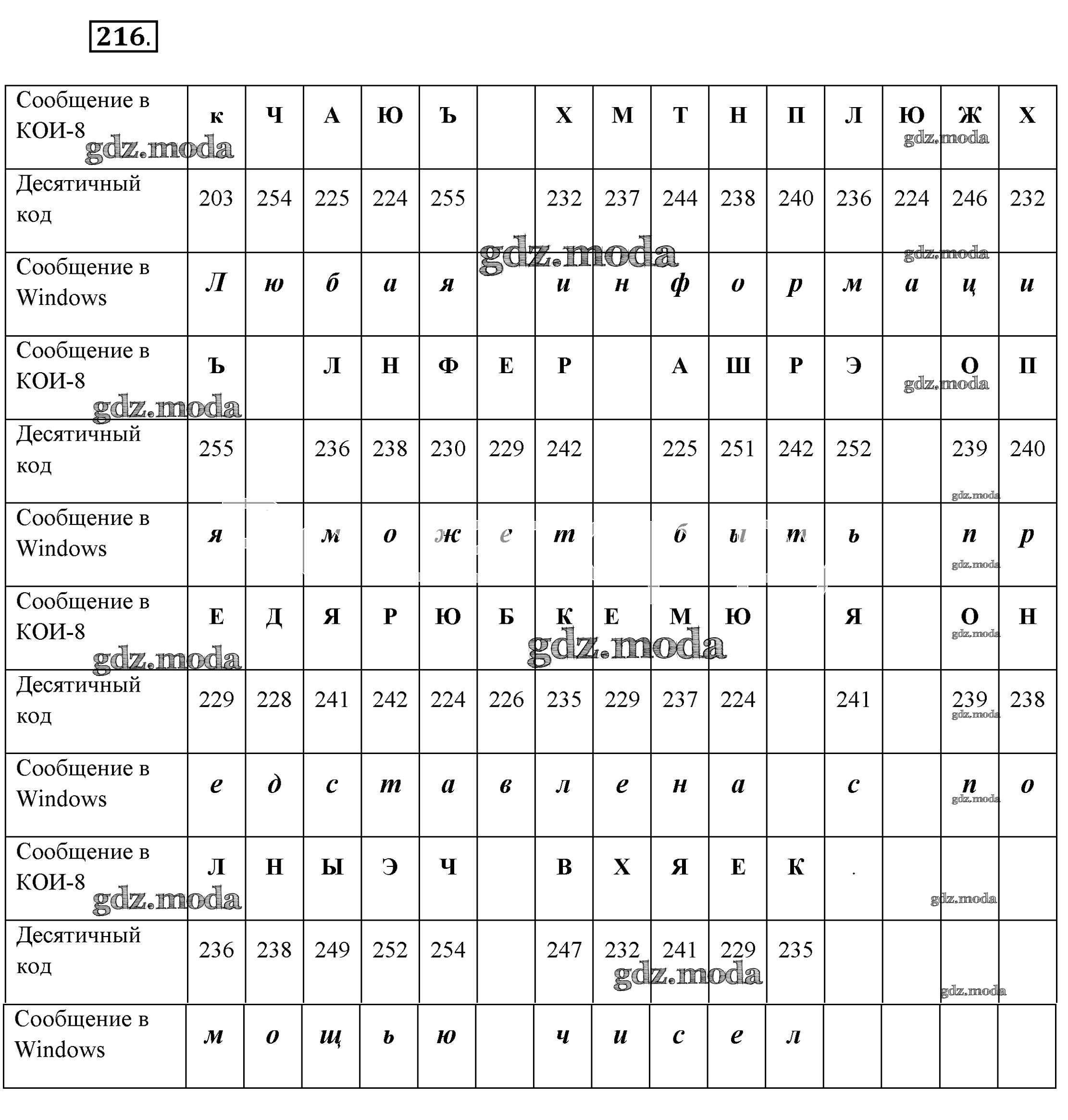 ГДЗ решение к заданию № 216 Информатика 7 класс рабочая тетрадь Босова Л.Л. Бином 2018 ФГОС бесплатно на гдз.мода!