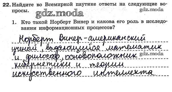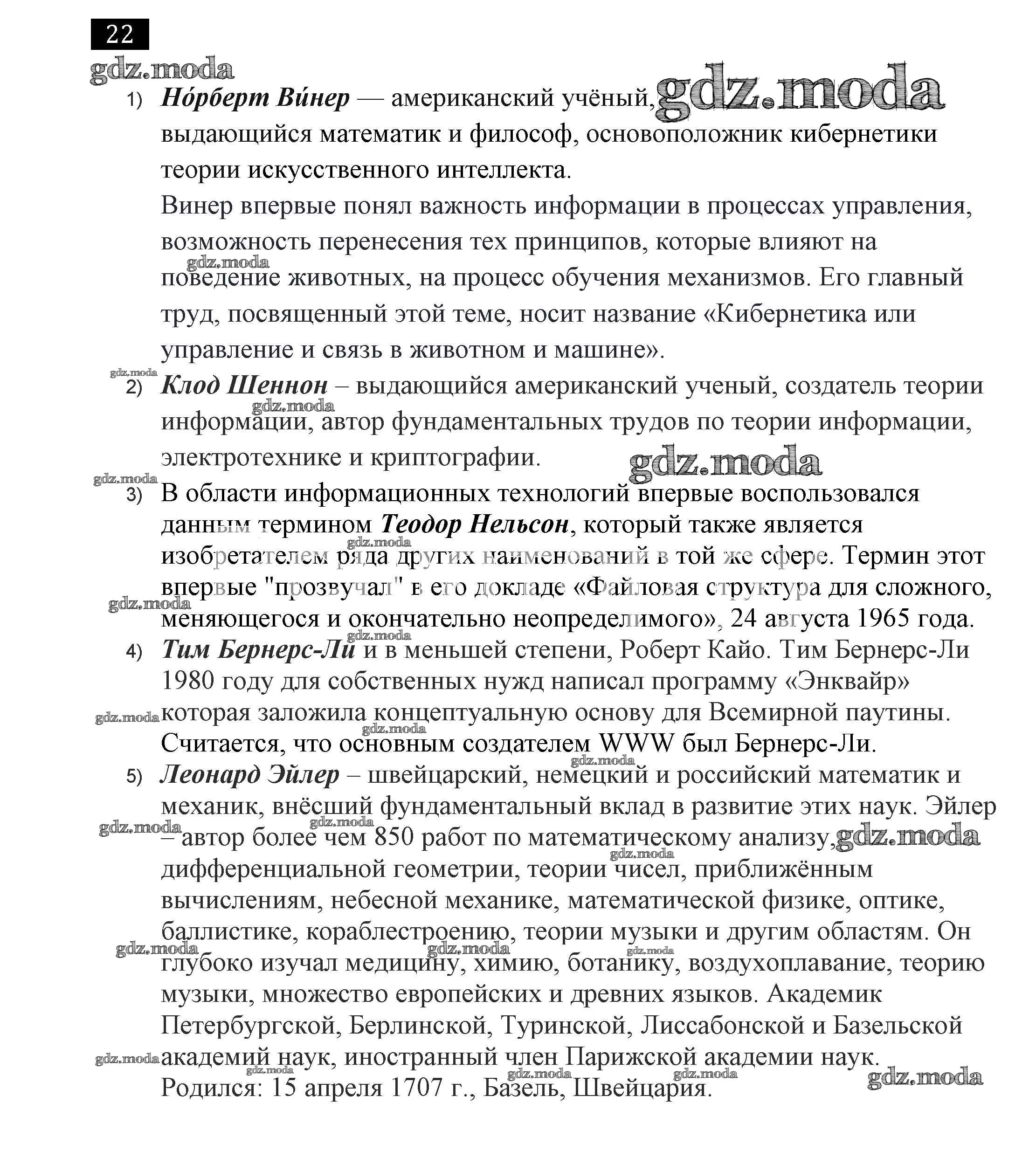 ГДЗ решение к заданию № 22 Информатика 7 класс рабочая тетрадь Босова Л.Л. Бином 2018 ФГОС бесплатно на гдз.мода!