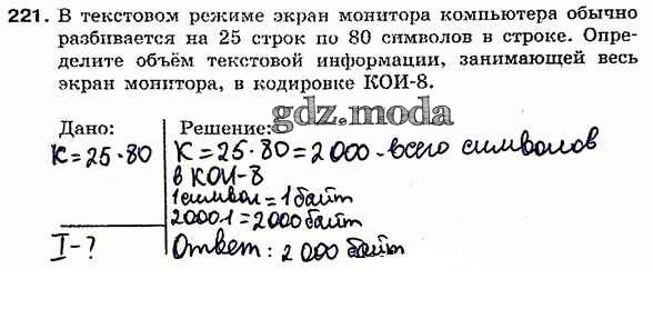 ГДЗ решение к заданию № 221 Информатика 7 класс рабочая тетрадь Босова Л.Л. Бином 2018 ФГОС бесплатно на гдз.мода!