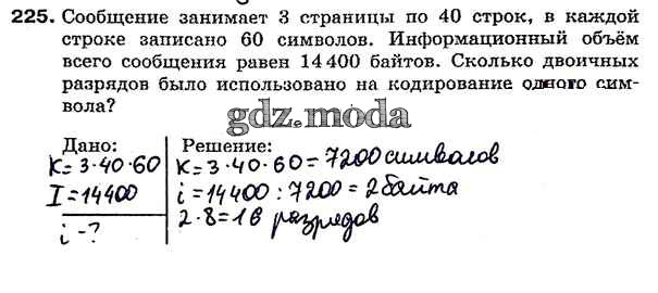 ГДЗ решение к заданию № 225 Информатика 7 класс рабочая тетрадь Босова Л.Л. Бином 2018 ФГОС бесплатно на гдз.мода!