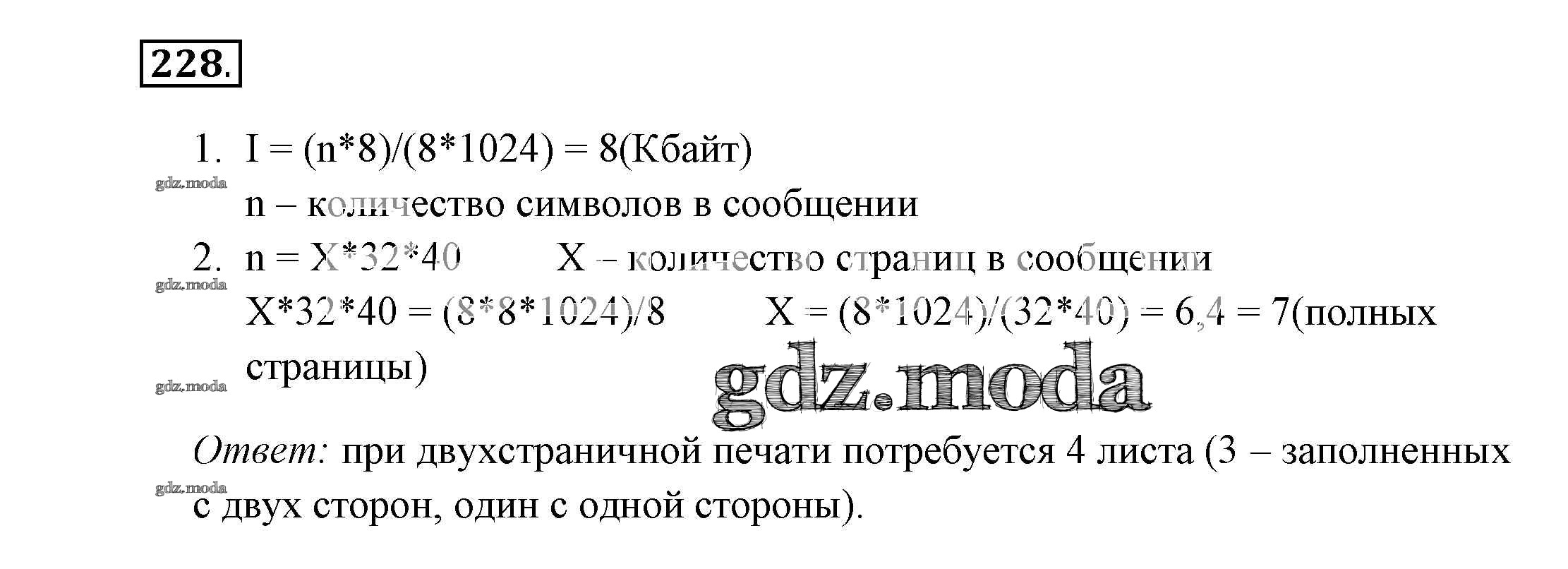 ОТВЕТ на задание № 228 Рабочая тетрадь по Информатике 7 класс Босова