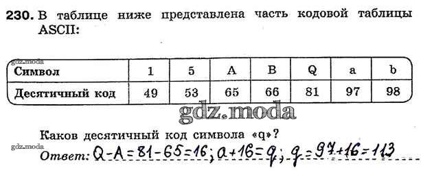 ГДЗ решение к заданию № 230 Информатика 7 класс рабочая тетрадь Босова Л.Л. Бином 2018 ФГОС бесплатно на гдз.мода!