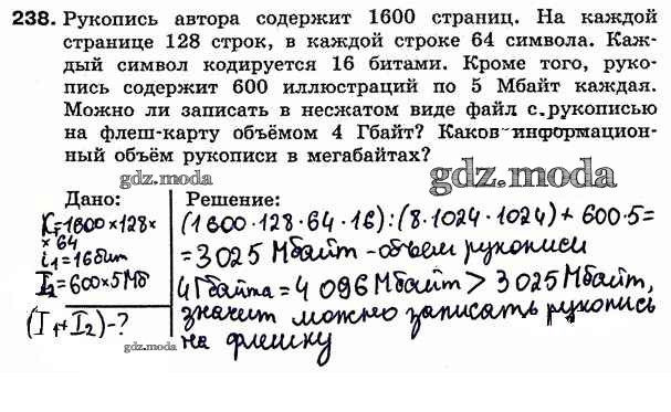 ГДЗ решение к заданию № 238 Информатика 7 класс рабочая тетрадь Босова Л.Л. Бином 2018 ФГОС бесплатно на гдз.мода!