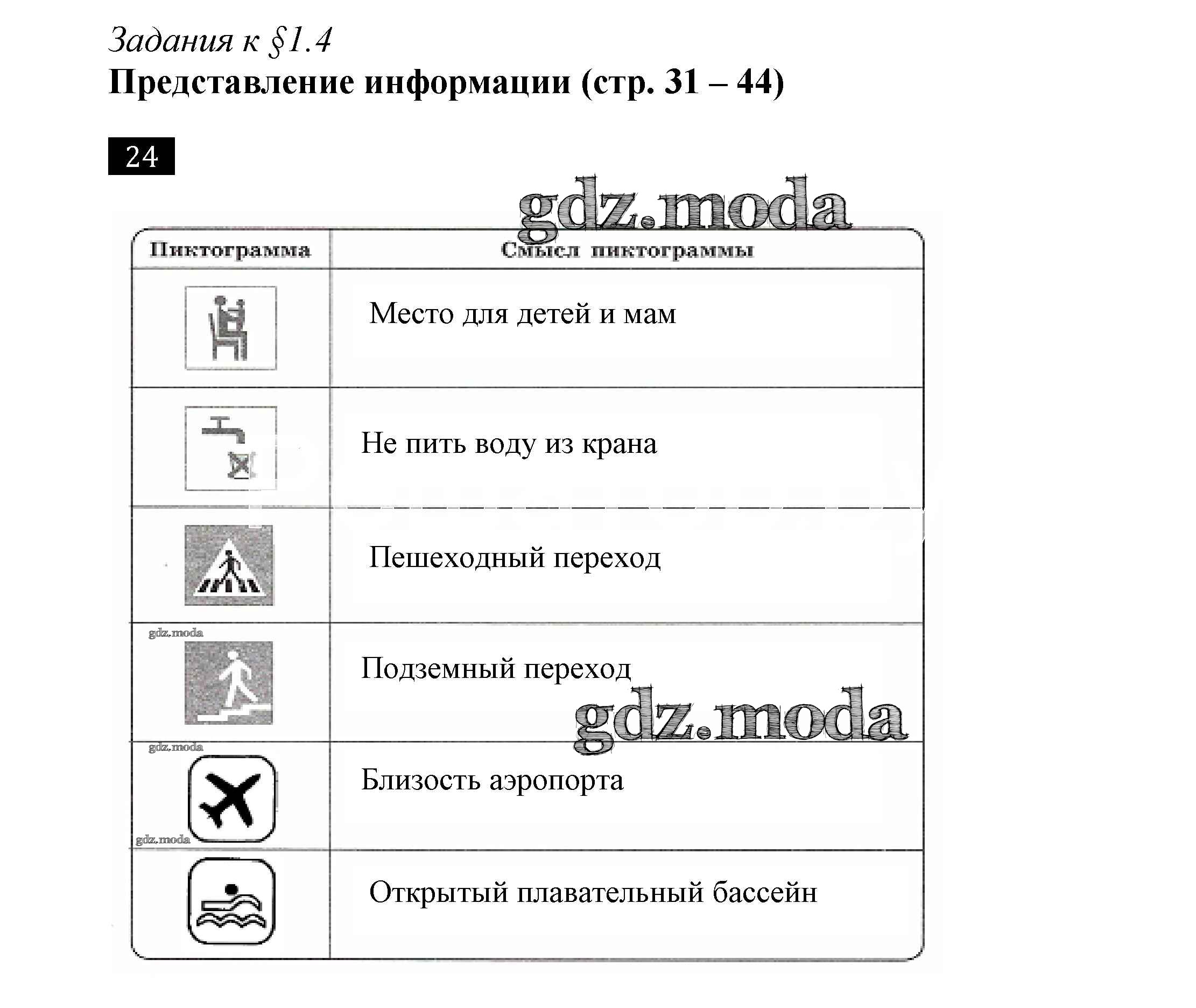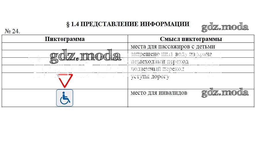 ГДЗ решение к заданию № 24 Информатика 7 класс рабочая тетрадь Босова Л.Л. Бином 2018 ФГОС бесплатно на гдз.мода!