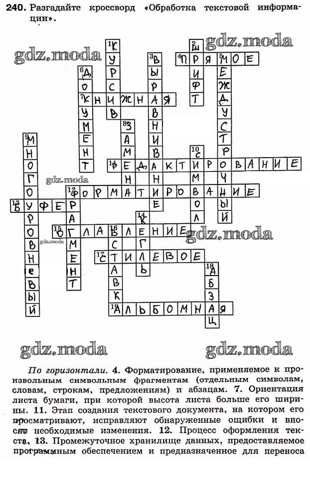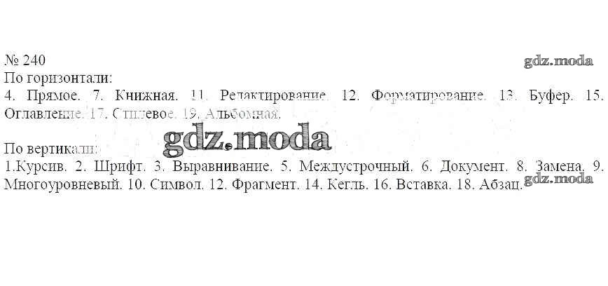 ГДЗ решение к заданию № 240 Информатика 7 класс рабочая тетрадь Босова Л.Л. Бином 2018 ФГОС бесплатно на гдз.мода!