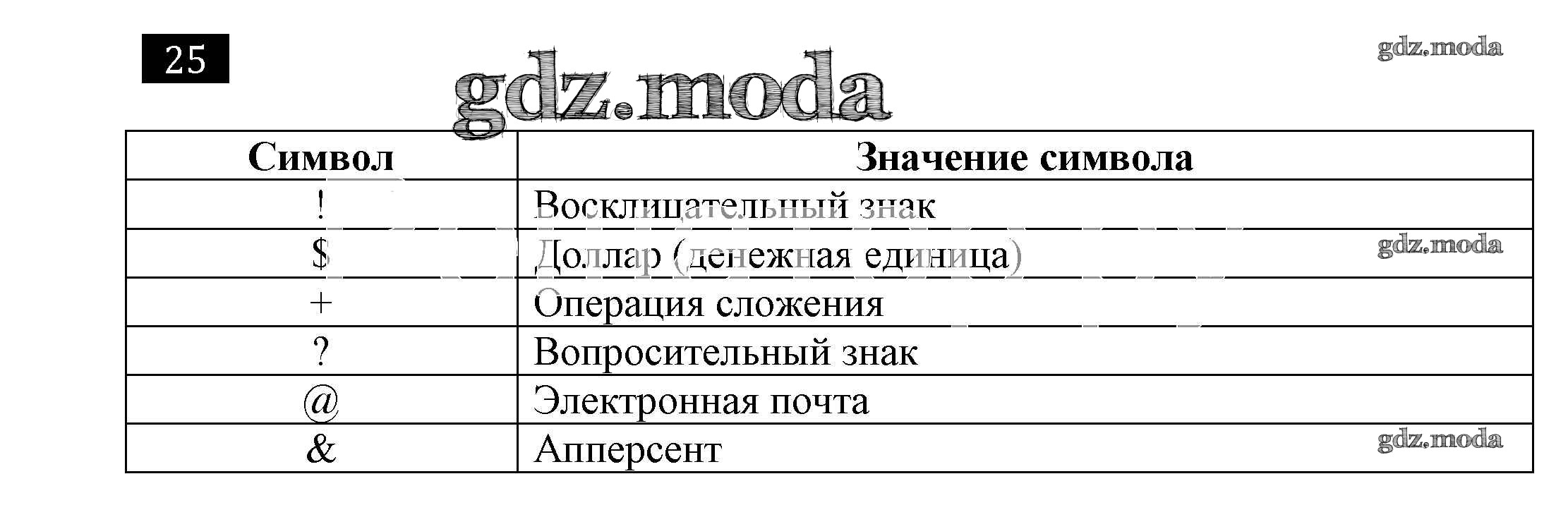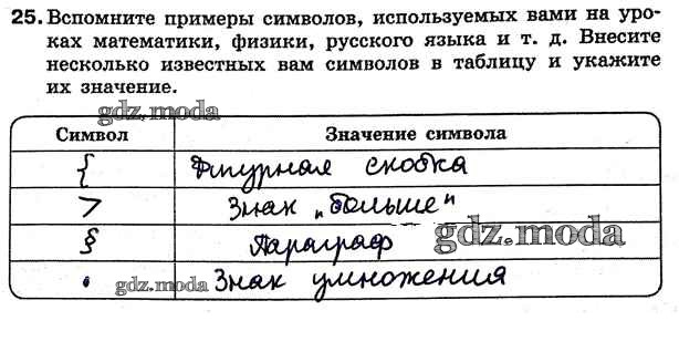 ГДЗ решение к заданию № 25 Информатика 7 класс рабочая тетрадь Босова Л.Л. Бином 2018 ФГОС бесплатно на гдз.мода!