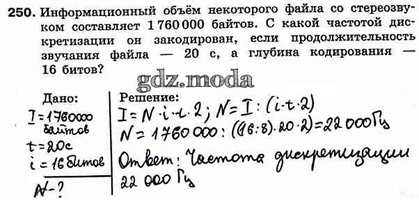 ГДЗ решение к заданию № 250 Информатика 7 класс рабочая тетрадь Босова Л.Л. Бином 2018 ФГОС бесплатно на гдз.мода!