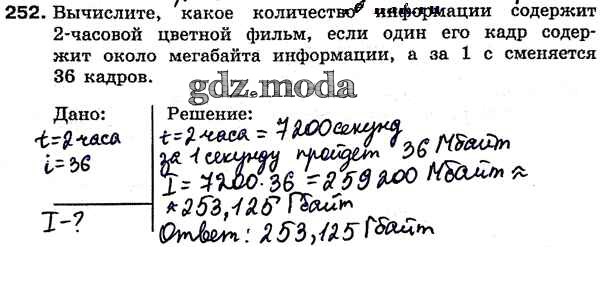 ГДЗ решение к заданию № 252 Информатика 7 класс рабочая тетрадь Босова Л.Л. Бином 2018 ФГОС бесплатно на гдз.мода!