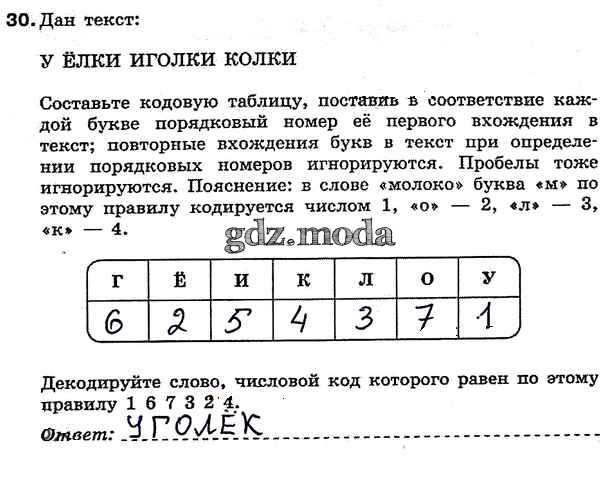 ГДЗ решение к заданию № 30 Информатика 7 класс рабочая тетрадь Босова Л.Л. Бином 2018 ФГОС бесплатно на гдз.мода!