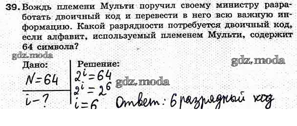 ГДЗ решение к заданию № 39 Информатика 7 класс рабочая тетрадь Босова Л.Л. Бином 2018 ФГОС бесплатно на гдз.мода!