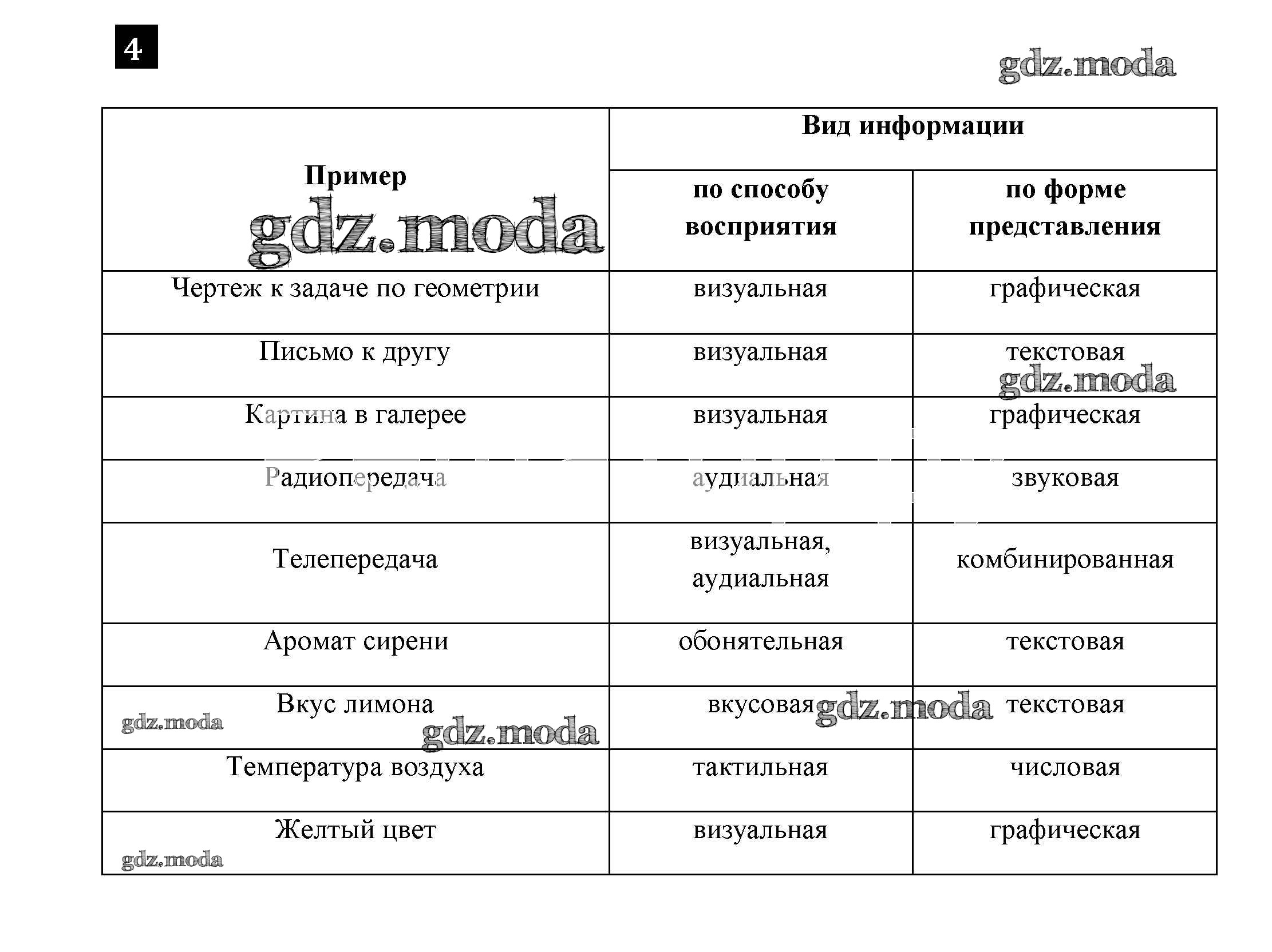 ГДЗ решение к заданию № 4 Информатика 7 класс рабочая тетрадь Босова Л.Л. Бином 2018 ФГОС бесплатно на гдз.мода!