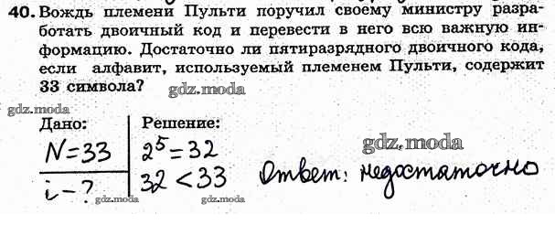 ГДЗ решение к заданию № 40 Информатика 7 класс рабочая тетрадь Босова Л.Л. Бином 2018 ФГОС бесплатно на гдз.мода!