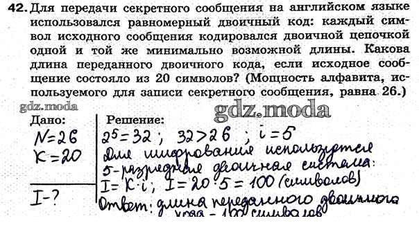 ГДЗ решение к заданию № 42 Информатика 7 класс рабочая тетрадь Босова Л.Л. Бином 2018 ФГОС бесплатно на гдз.мода!