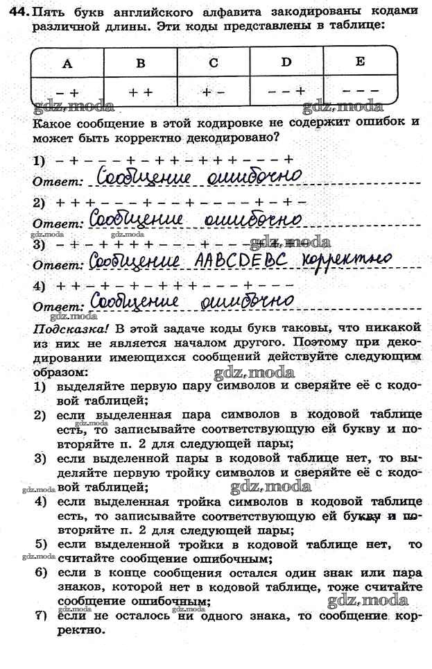 ГДЗ решение к заданию № 44 Информатика 7 класс рабочая тетрадь Босова Л.Л. Бином 2018 ФГОС бесплатно на гдз.мода!