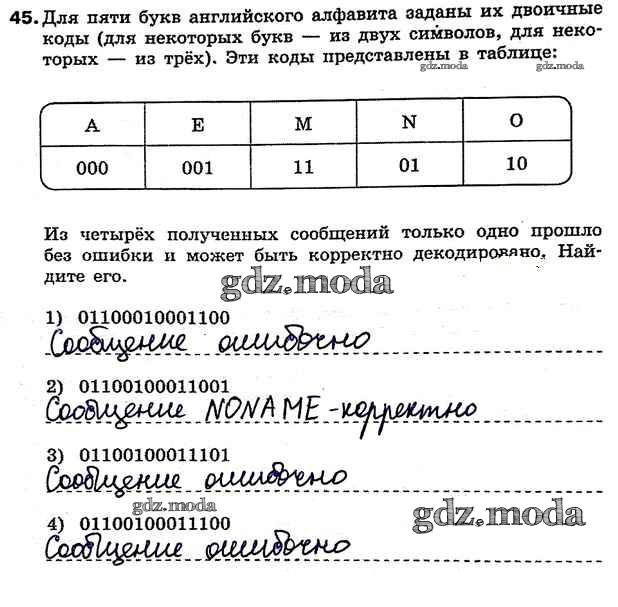 ОТВЕТ на задание № 45 Рабочая тетрадь по Информатике 7 класс Босова