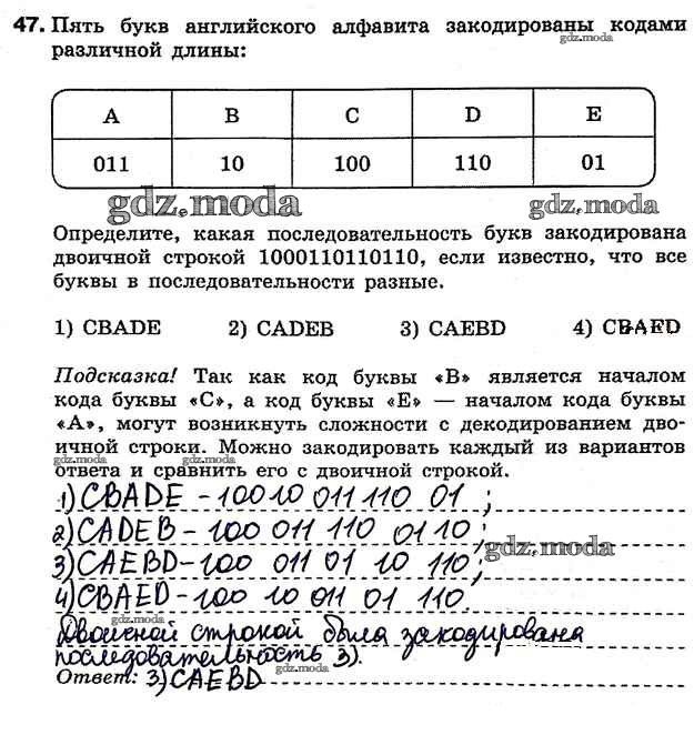 ГДЗ решение к заданию № 47 Информатика 7 класс рабочая тетрадь Босова Л.Л. Бином 2018 ФГОС бесплатно на гдз.мода!