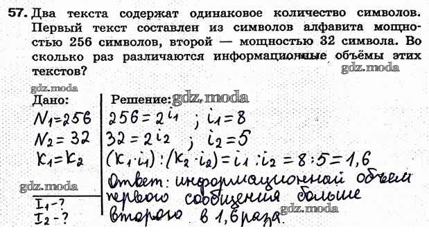 ГДЗ решение к заданию № 57 Информатика 7 класс рабочая тетрадь Босова Л.Л. Бином 2018 ФГОС бесплатно на гдз.мода!