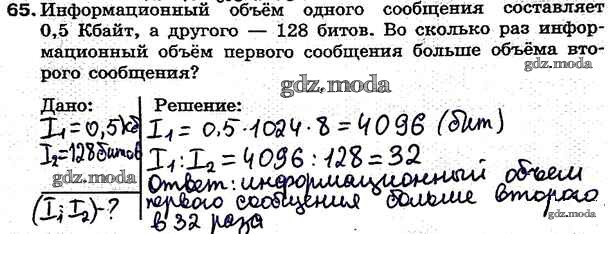 ГДЗ решение к заданию № 65 Информатика 7 класс рабочая тетрадь Босова Л.Л. Бином 2018 ФГОС бесплатно на гдз.мода!