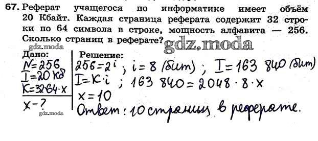 ГДЗ решение к заданию № 67 Информатика 7 класс рабочая тетрадь Босова Л.Л. Бином 2018 ФГОС бесплатно на гдз.мода!