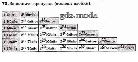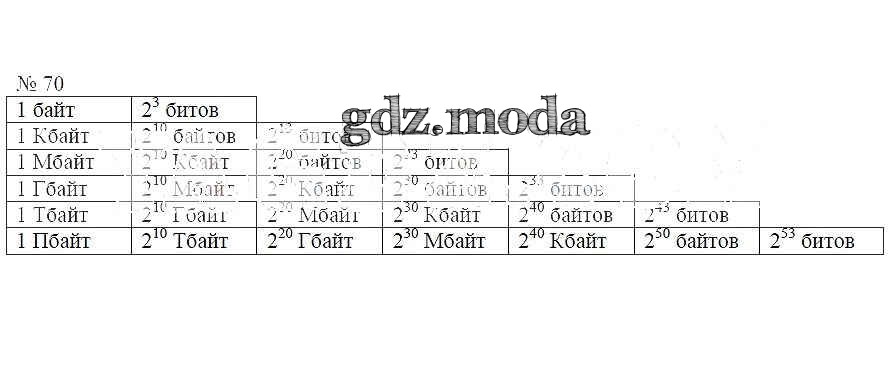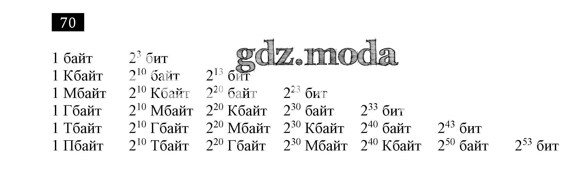 ГДЗ решение к заданию № 70 Информатика 7 класс рабочая тетрадь Босова Л.Л. Бином 2018 ФГОС бесплатно на гдз.мода!