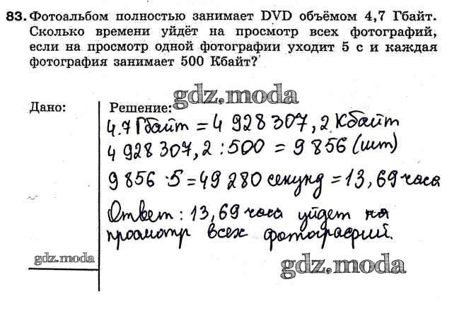 ГДЗ решение к заданию № 83 Информатика 7 класс рабочая тетрадь Босова Л.Л. Бином 2018 ФГОС бесплатно на гдз.мода!